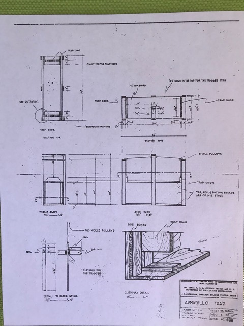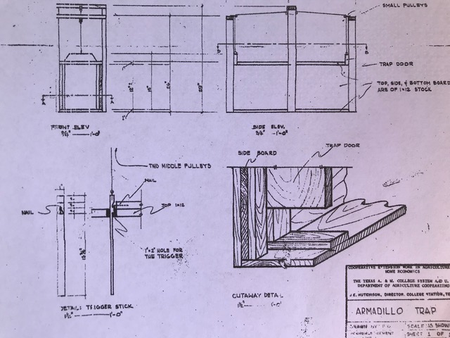 Howdy Howard, This armadillo trap is something good that comes from Texas A&M. It works!!! – HL Olsen, Stephenville, TX