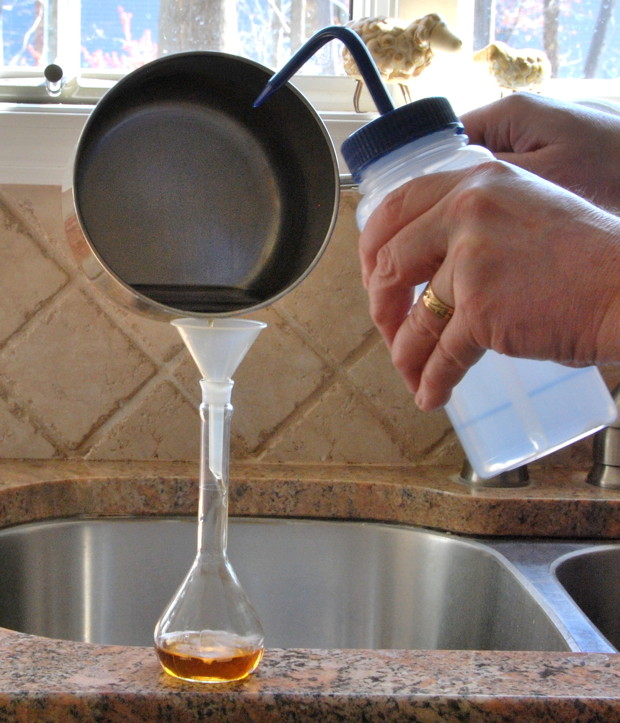 The test tube is calibrated to measure the amount of liquid displaced, and from that, determine how much sugar is present.”
