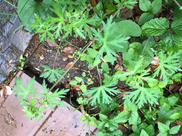 This wildflower/weed is a multi-branched and sprawling, pubescent annual or biennial, usually no taller than 1 ft. Leaves are palmately and finely cut into five-parts. Five-petaled, pale pink or white flowers occur in loose terminal clusters.