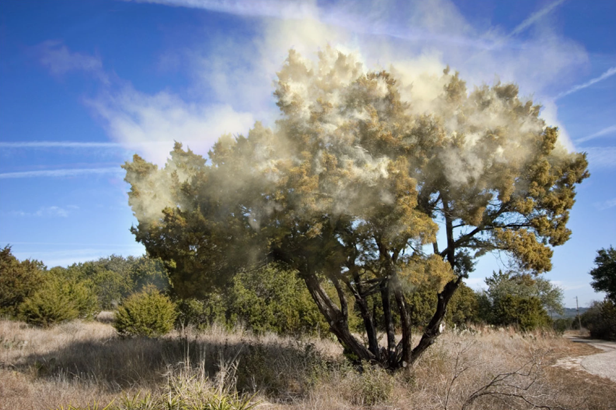 Mountain Cedar releasing pollen. Photo by Andy Heatwole via Flickr