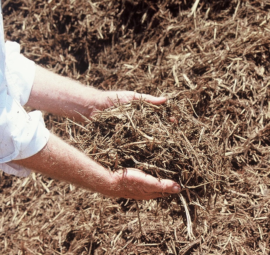 ![]() Shredded native mulch will smother weeds weeds growing on bare soil in beds |
