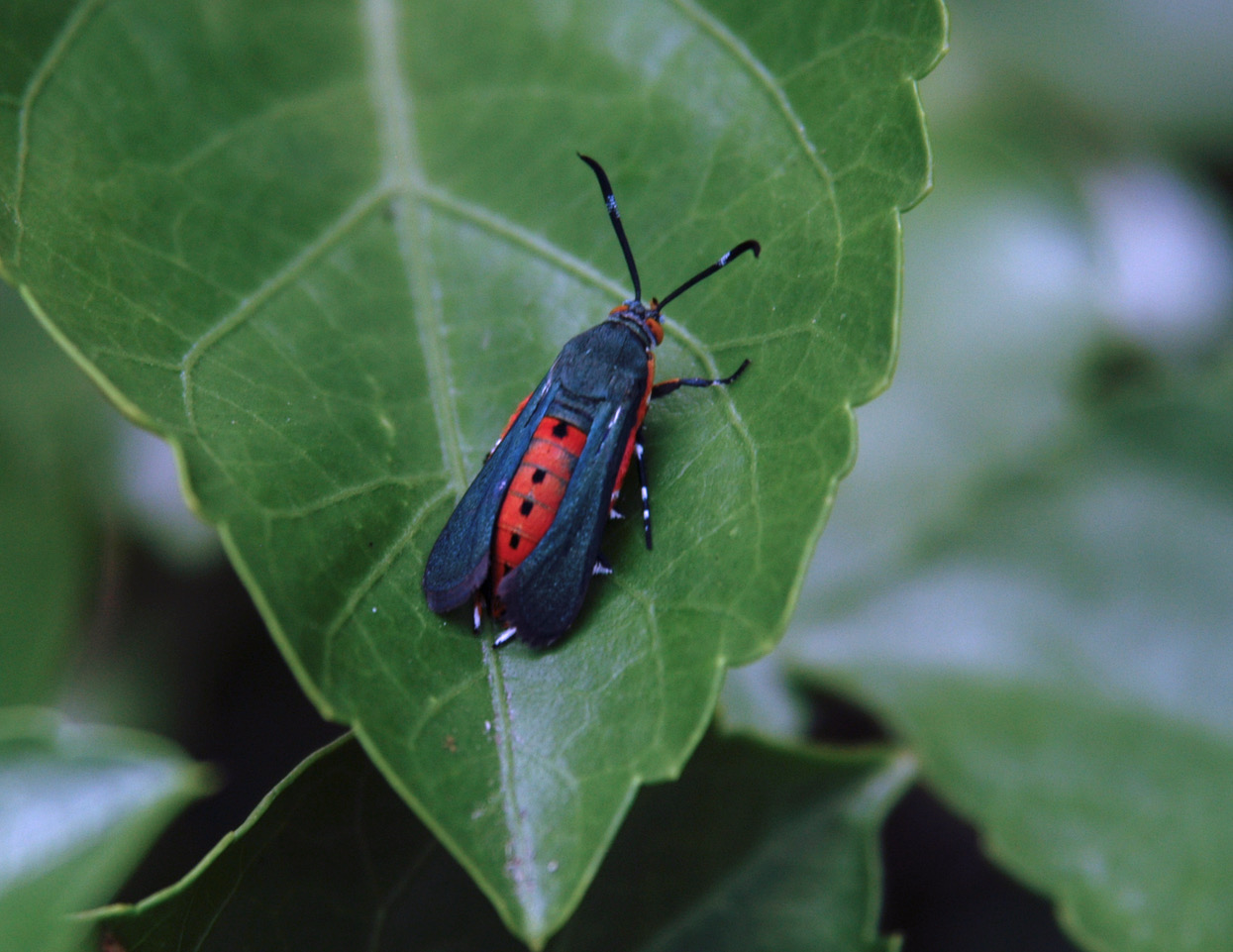 ![]() Adult moth of the the squash vine borer. Not a problem with Tatume squash. |