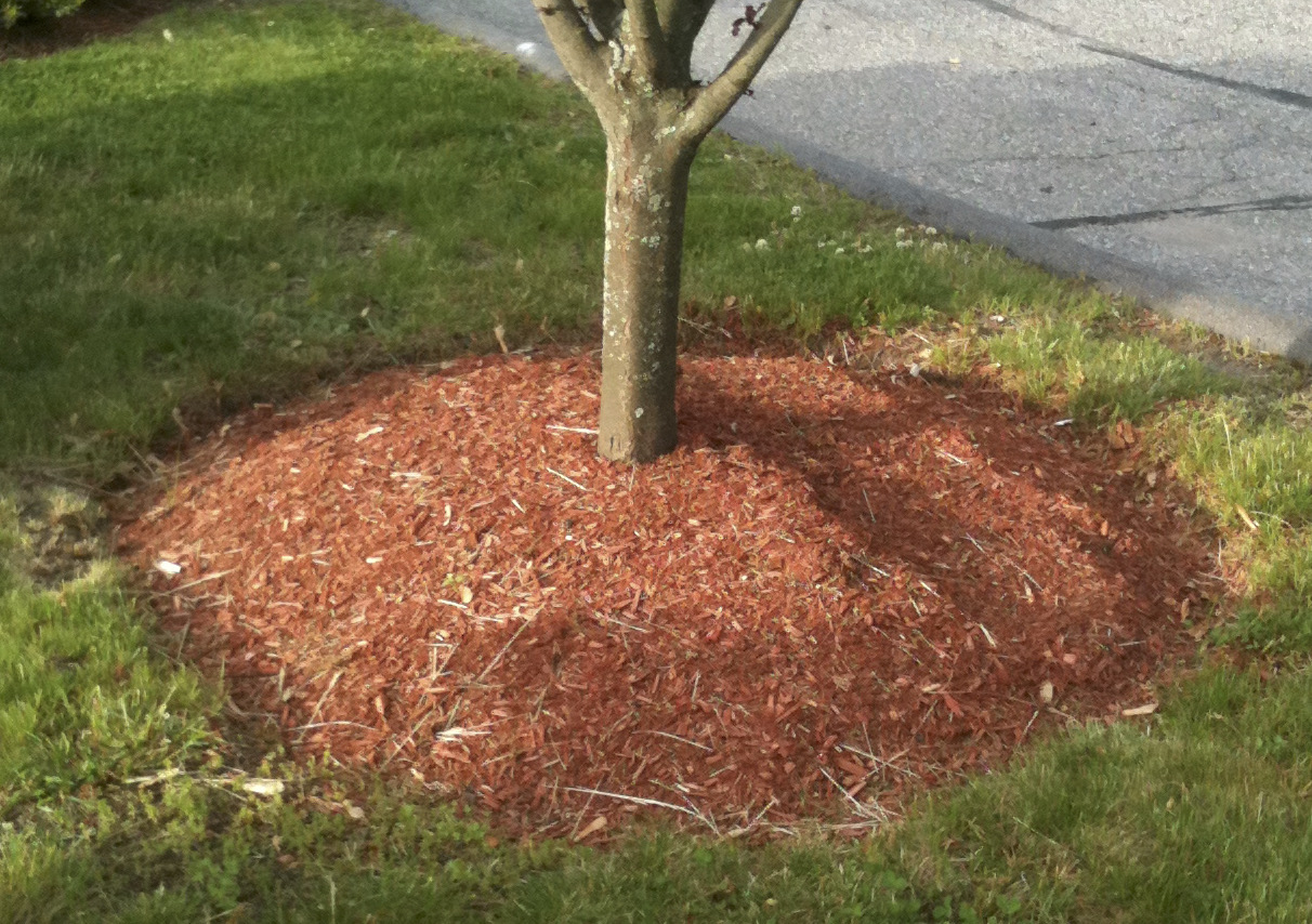 Dyed mulches become more detrimental to the soil and plants when plastic sheets or so-called “weed blocking fabrics” are installed on the ground before the mulch is applied. Plastic creates a smothering effect that is bad for all plants, especially trees. It also fouls up the most important part of the soil. The soil surface just under the mulch is where the moisture, temperature, pH, tilth and biological activity should be in ideal condition. With the plastic there it can’t happen – and there is virtually no weed control that results.