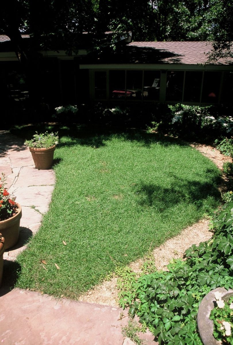 Some years ago a turfgrass company asked me to test some turf. The new grass sounded like a good idea. It was called Reveille, a cross of Kentucky bluegrass and Texas native bluegrass, an idea developed by Dr. James Read, Texas A&M grass breeder and geneticist in Dallas. It looked like Kentucky bluegrass but was supposed to be hardy enough to stand the Texas sun and heat. One theory was that it would grow in shadier areas than buffalograss could stand and would make a good companion. Great idea I thought – let’s try it.