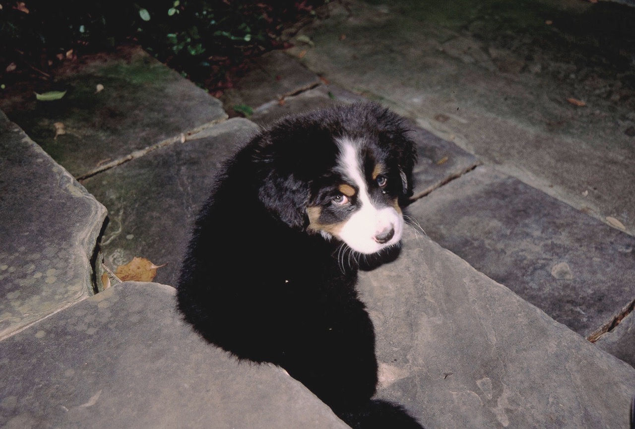 Within a couple of weeks, the brown spots had spread and the entire planting was almost completely dead. Turns out it was a phytotoxicity, or rather a fidotoxicity – and the culprit was this fido – Burnese mountain dog puppy, Tully.