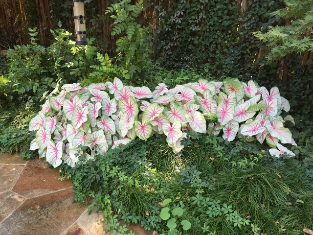 Notes: Colocasia is very similar but has doesn’t have raised veins as does Alocasia. Colocasia is the mass planting that grow on the edge of Turtle Creek in Dallas. They are even more cold hardy that Alocasia.