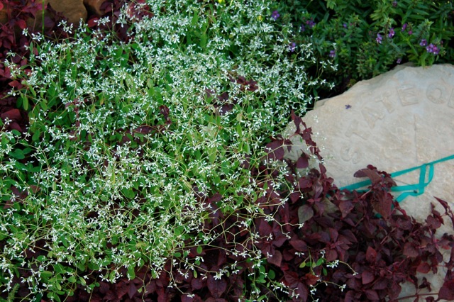 HABIT: Annual for sun to part shade that produces delicate, gray-green foliage and white blossoms. But don’t be fooled. This plant is tough! Likes the heat and it blooms constantly throughout the summer. Excellent alternative to baby’s breath that tends to fade quickly. Compact grower reaching a mature height of 12 to 18 inches. This makes it an ideal choice for containers or the front of a flowerbed. Euphorbia hybrid ‘White Manaus’ actually spreads a little more and gets a little taller tan Diamond Frost. Fairly drought tolerant, deer resistant and self-cleaning (no deadheading necessary).