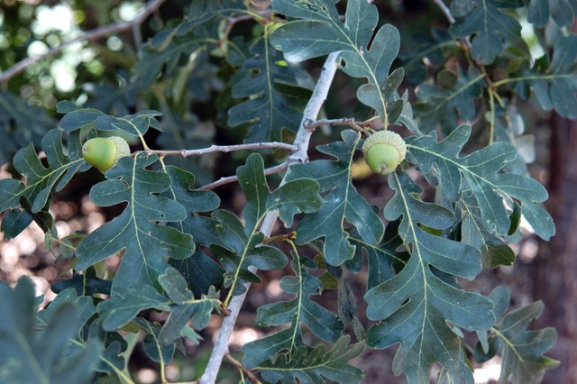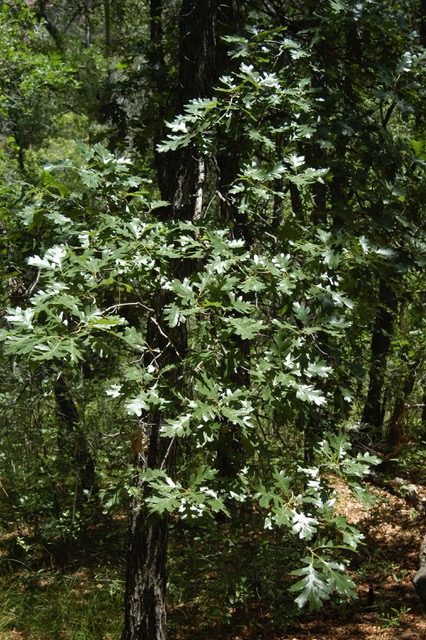 Habit: Small, round-crowned tree or clump shrub, sometimes forming thickets, it occasionally reaches 50 ft. but is usually no taller than 30 ft. Its deeply-lobed, deciduous leaves are bright green above and paler below, turning brown or sometimes red in fall. Rounded crown, often in dense groves; or a thicket-forming shrub. It is the common oak of the Rocky Mountains, abundant in Grand Canyon National Park. It is closely related to White Oak (Quercus alba) of the eastern United States. The average height is 10 to 30 feet, depending on location and annual precipitation. Unfortunately it can be fire-prone but it quickly regenerates afterwards by sending up sprouts from a hardy and vigorous root system.