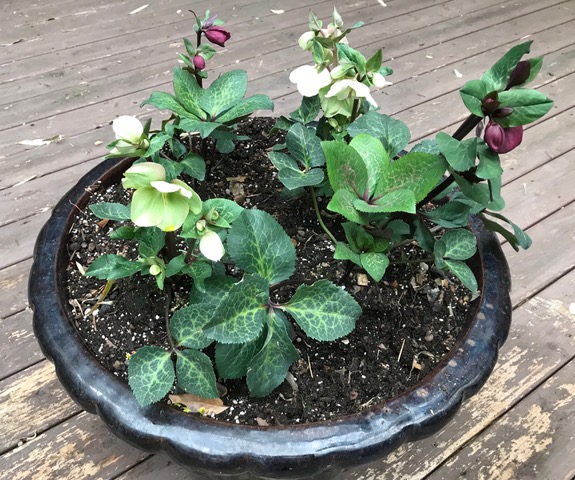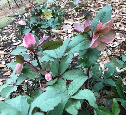 Habit: This is a terrific herbaceous perennial that is clump-forming, winter- blooming and easy to grow. It has large, cup-shaped, rose-like, usually nodding flowers (3-4″ diameter) with center crowns of contrasting yellow stamens. Flowers mostly appear in clusters on thick stems rising above the foliage. Flower color is widely variable, ranging from white and pink to rose-purple, frequently with interior spotting. Leaves are palmate, serrate, leathery, glossy, dark green leaves (7- 9 leaflets). The plant is evergreen in warm climates but deciduous in extremely cold winters. Plants sometimes remain evergreen in moderate winters. Blooms sometimes present when snow is still present and continues into spring.