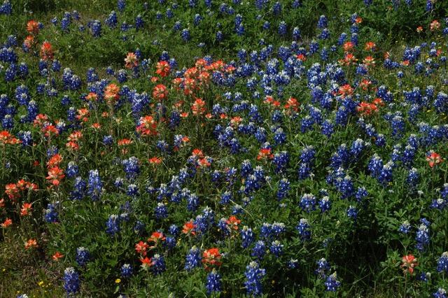 Roots of this plant will grow until they touch the roots of other plants, frequently grasses, penetrating these host roots to obtain a portion of their nutrients. Transplanting paintbrush may kill it. It has a reputation for being unpredictable. In some years, when bluebonnets (which flower at approximately the same time as Indian paintbrush) are especially colorful, paintbrush will have only an average flowering year. Other years, paintbrush is spectacular.