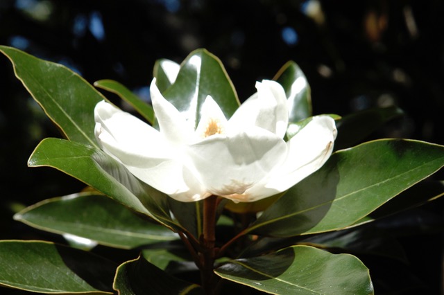 Magnolia grandiflora (mag-NOLE-ee-ah gran-dee-FLORE-ah)