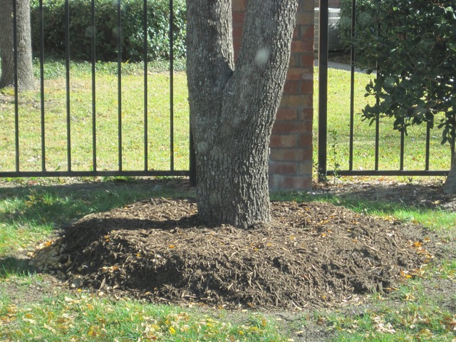 ![]() Proper tree mulching – thin and off the flare |