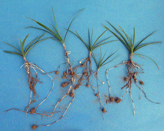 Nutgrass (Cyperus esculentus and Cyperus rotundus Nutsedge also called purple or yellow nutgrass are perennial sedges introduced from Eurasia. They spread by seeds, nutlets and creeping tendrils. They like wet, anaerobic soils and that is a key to control. They are perennial pests in lawns and gardens. Erect, single, triangular stems have narrow, grass-like, yellow-green leaves. Leaves point outward in 3 directions. Booms in late summer to early fall. Seed heads are yellow-brown. Plant tops die back in the fall, leaving underground tubers to over winter in the soil and repeat the cycle the following year. Nutgrass reproduces by seeds as well as tubers, which are generally the size of popcorn kernels. Weeds sprout in late spring and early summer. A single tuber of yellow nutsedge is capable of producing 146 tubers within 14 weeks following planting and can infest an area 6 ½ feet in diameter. We used to say that there’s no good organic or toxic chemical solution for nutgrass. On the toxic chemical side, that’s true. The commonly recommended chemicals are Image and Manage. Most everyone in the landscape industry agrees that Image doesn’t work on one of the most common species. Manage works better but will severely damage or kill your trees.
