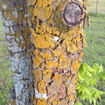Lichen: Growth seen on rocks and the trunks of trees commonly growing in flat greenish, gray, brown, yellow or black patches. |