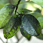 Sooty mold: Black fungal growth on the foliage of plants such as gardenias, crape myrtles, and other plants infested with aphids, scale, or whiteflies. |