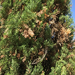 Italian Cypress Canker: Some in the business incorrectly diagnose the dead brown spots in the plants as spider mites. |