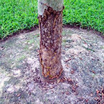 Wet wood: Bacterial wet wood on trees shows up as oozing cell sap, a white frosty material that attracts insects. |