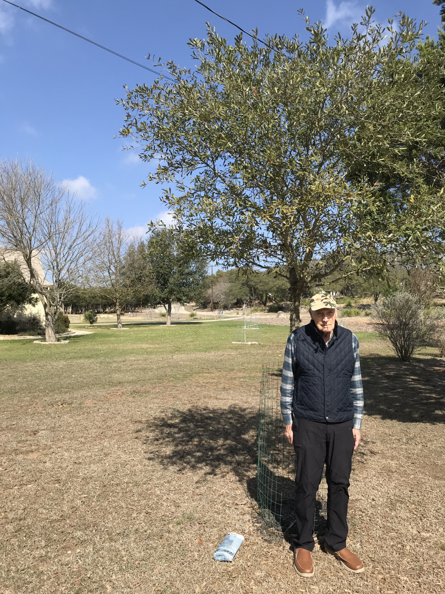 An email received by a listener contained two photos of live oak trees that received different treatment: one organic, one not. The listener reported “Both same size from same source, planted same day, adjacent lots so same old pasture land.”