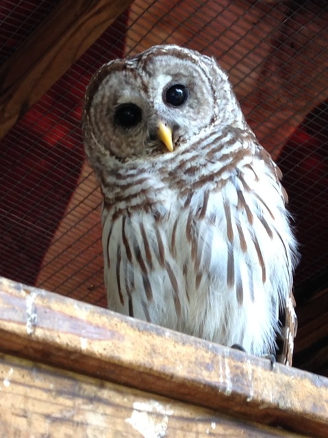 Owls possess large, forward-facing eyes and ear-holes, a hawk-like beak, a flat face, and usually a conspicuous circle of feathers, a facial disc, around each eye. The feathers making up this disc can be adjusted to sharply focus sounds from varying distances onto the owls’ ears.