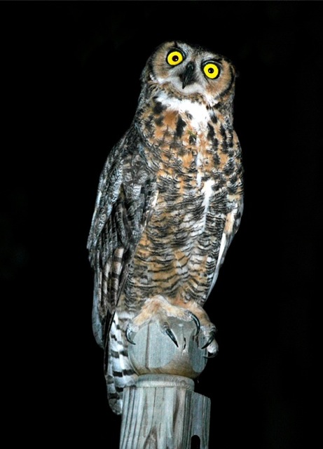 Most birds of prey have eyes on the sides of their heads, but the stereoscopic nature of the owl’s forward-facing eyes permits the greater sense of depth perception necessary for low-light hunting. Although owls have binocular vision, their large eyes are fixed in their sockets – as are those of most other birds – so they must turn their entire heads to change views. They are farsighted and unable to clearly see anything within a few centimeters of their eyes. Caught prey can be felt by owls with the use of filoplumes – hairlike feathers on the beak and feet that act as “feelers”. Their distance vision, especially in low light, is exceptionally good.