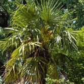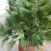 | Windmill palm (Trachycarpus fortunei). Also called Chinese windmill palm, it is a relatively slow-growing, small, tough palm with dark green foliage; cold-hardy to 5 degrees. It is tough and easy to grow but has a puny trunk. |