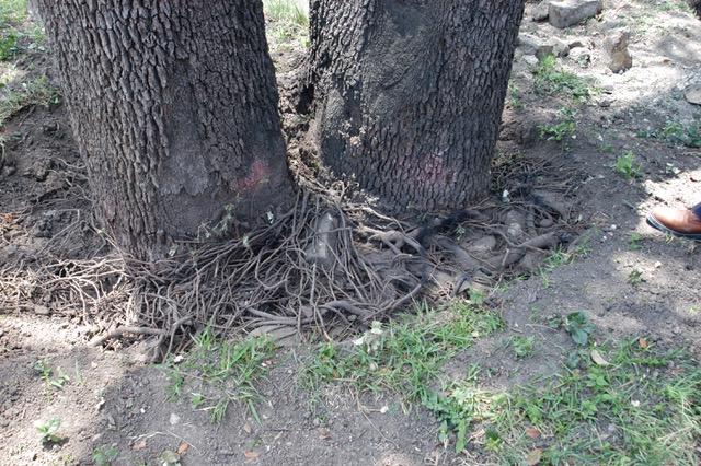 Fort Worth were exposed. Spaghetti looking roots like shown here are trying to grow up in the soil to reach