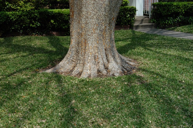 There are two basic issues to discuss here. When the flare is underground or covered by mulch or groundcover plants, it stays moist and doesn’t breathe properly as bark is supposed to do. The moist condition on the bark slows down or stops growth and with time can lead to rot and even death. Soil, mulch and plants too high on the trunks also often hides circling and girdling roots that choke the tree, drastically slowing down growth and cutting into the trunk. Trees grown in containers are highly subject to this damaging condition but balled and burlapped and bare rooted trees also have the problem often. Chinese pistachio and crape myrtles seem to be planted improperly deep more than any trees but all are subject to this problem.