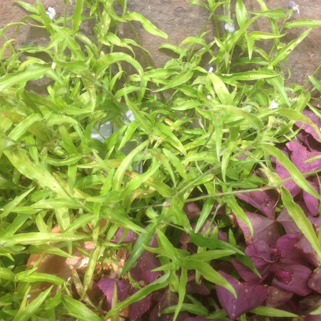 ), or benghal dayflower is the weed. It is perennial, similar in look but not related to Tradescantia spp., the ornamental spiderwort. It is a highly invasive and problematic to gardeners and farmers in the southern states and considered a noxious weed nationwide. Tropical spiderwort spreads not only by self-seeding above ground, but also produces small seed-producing flowers underground. The plant also spreads by root nodes on any broken pieces left in the soil. It is said that of the 250,000 species of flowering plants, only 36 have underground flowers. Tropical spiderwort can be controlled by spot spraying vinegar or fatty acid products or with the commercial product