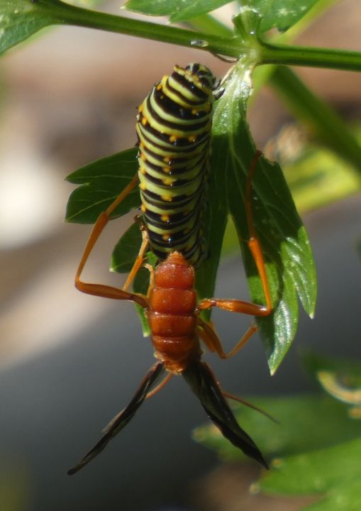 ![]() This photo of a wasp laying an egg in a black swallowtail caterpillar was captured in Baltimore, MD in September, 2021, by Rob Nease. Originally published in the Facebook group “Antman’s Hill.” |
