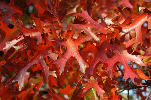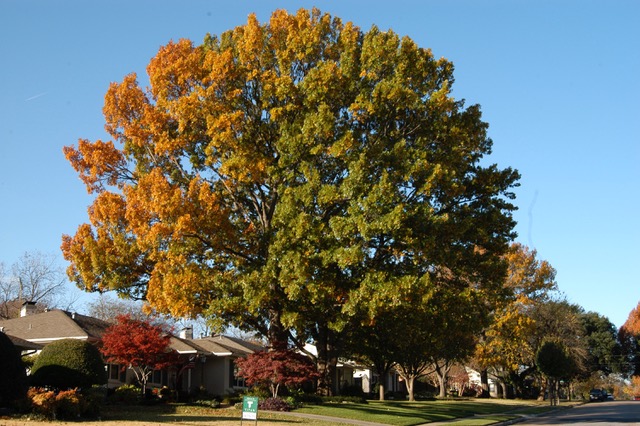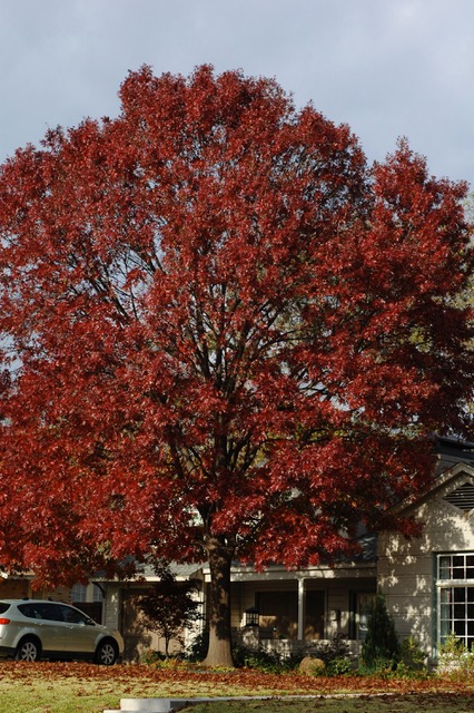 Habit: Red oak is a graceful, majestic, tall-growing to over 100 feet and wide- spreading shade tree with beautiful fall color and lovely deeply cut leaves. Fall color can range from yellowish-browns through yellows and reds to deep maroons. Typically has no central stem although I have seen some true Shumard red oaks with central stems. What’s referred to as Q. buckleyi is shorter – 35-70 feet.