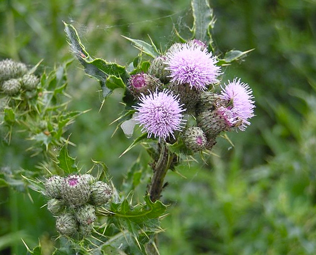 HABIT: Thistle is a perennial that spreads by seed and an underground system of vertical and horizontal roots. It is diecious, meaning male and female flowers occur on separate plants. Flowers are pink, bristly, 1/2 inch long and wide. Characteristics are extremely variable when examining populations from different regions. They are 3 to 5 feet tall, with glossy foliage on the upper surface and woolly on the lower leaf surface although this is one of the more variable characteristics. Leaves are alternately arranged, lobed and armed with stiff spines.