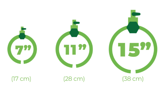 Tree Hugger Sprinklers Available in three sizes: 7″, 11″, and 15″.