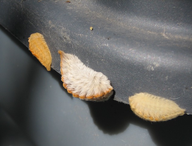With the same shape and color, egg casings of the praying mantis are often mistaken for puss caterpillars. They look like the other insect at a quick glance but are the temporary housing for many baby beneficial insects and of course should not be harmed.