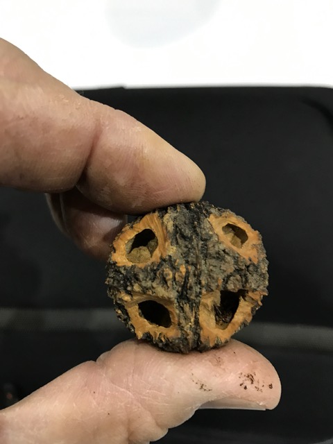 Squirrel damage to black walnut. Notice the perfect symmetry of the work.