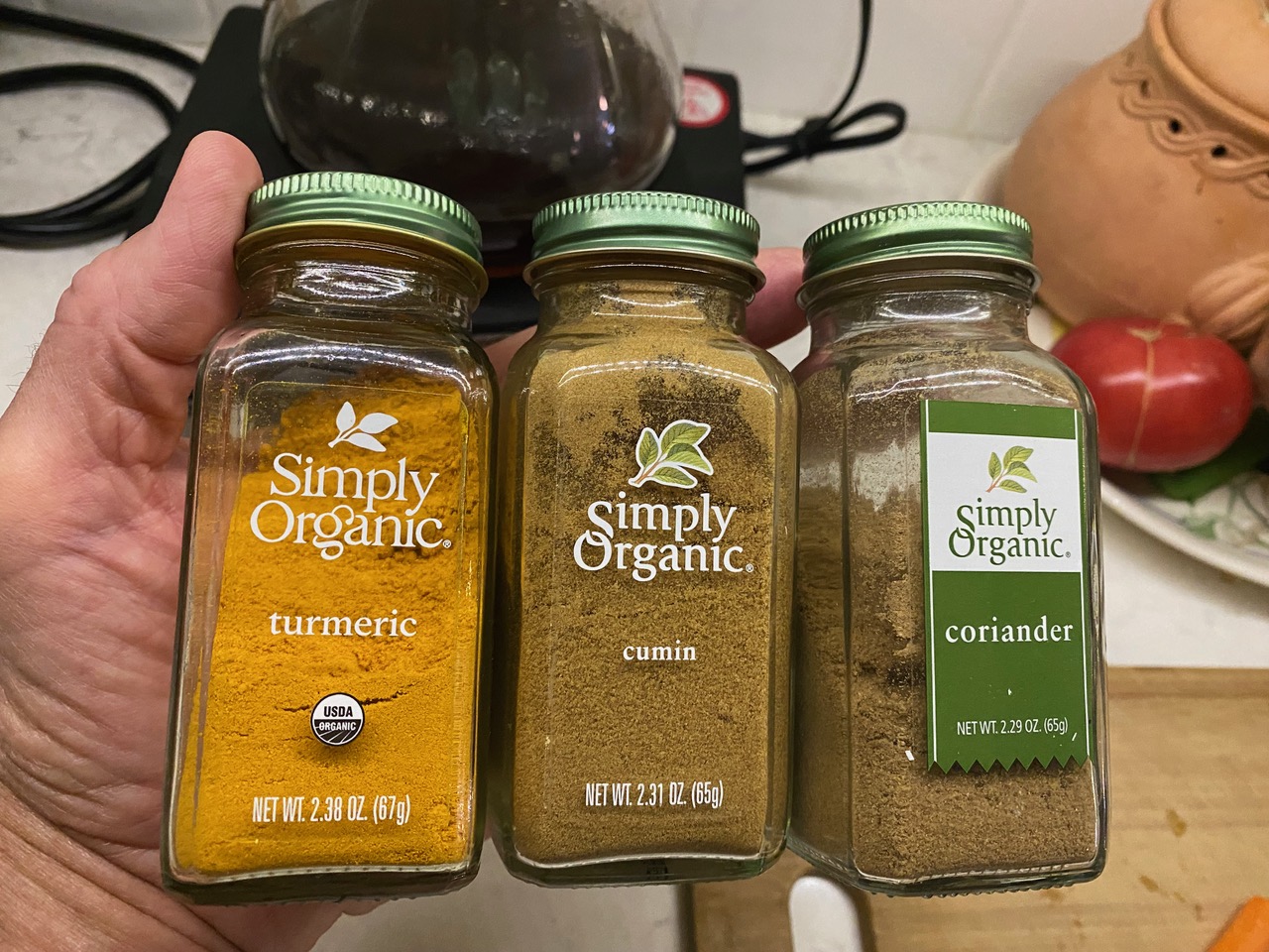 I had always thought that Cumin and Turmeric were somehow the same the same. They aren’t. Cumin is from the parsley family (Apiaceae), but Turmeric is from the ginger family (Zingiberaceae). Cumin is from the seed of a flowering plant; Turmeric is from the root of a tropical plant.