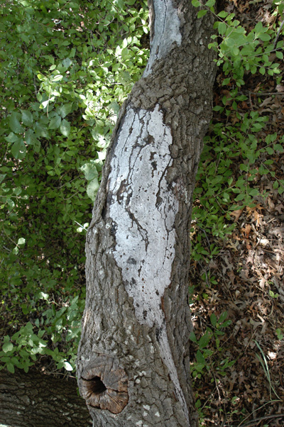 Lightning damage – strikes that caused strips of bark to be blown off are stressful but the tree can usually be saved. When lightning goes through the center of the trunk and blows all the bark off, tree is a goner. |