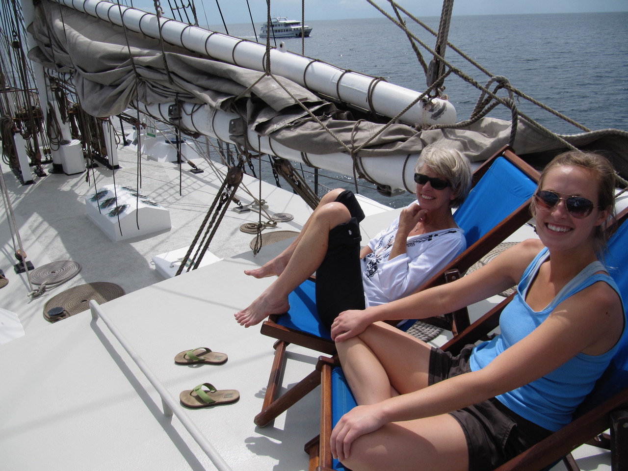 Judy (left) and Logan on the Mary Anne as we sailed around the Galápagos
