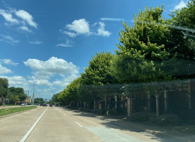 Healthy hybrid maples on Lover’s Lane, Dallas, 2020 (left) and Dying hybrid maples in 2021.