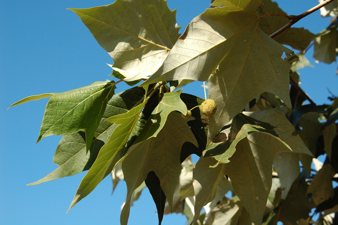 Few trees are more dramatic and more beautiful than a healthy American sycamore (Platanus occidentalis). They grow large, are majestic in structure, and have dramatic foliage with striking white bark in the winter. Years ago this tree was one of main street trees planted in new developments. Hindsight shows that it would have been much better if developers had planted native oaks and elms because most of the sycamores are dead now. Some are gone because they were planted too deep in the ground, other because of. Planting too deep and disease are probably related.