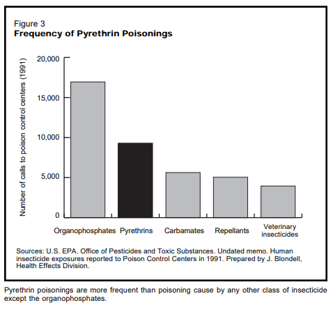 As you can read in the Journal of Pesticide Reform, (Vol. 22, No. 1), published by the Northwest Coalition for Alternatives to Pesticides, there are scary facets to pyrethrum. The journal says that, in laboratory tests, insecticides made from pyrethrum have caused tumors in animals, increased the risk of leukemia, disrupted the normal function of sex hormones, and triggered allergic reactions including heart attack and asthma.