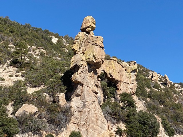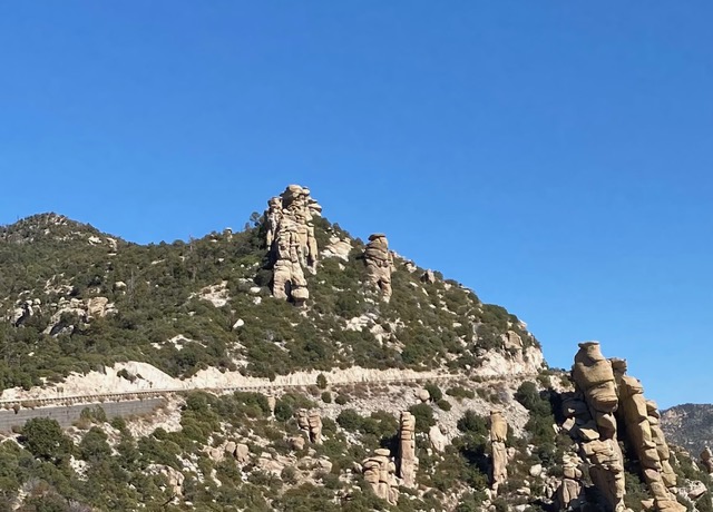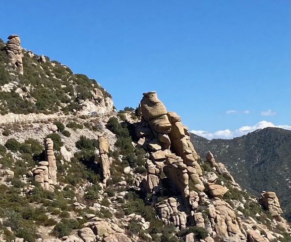 On a more recent trip to Tucson, I got additional photos of the area where Rio was rescued. Along the road are views of the small oaks zone, rock formations and the unique hoodoos that embellish the trip.