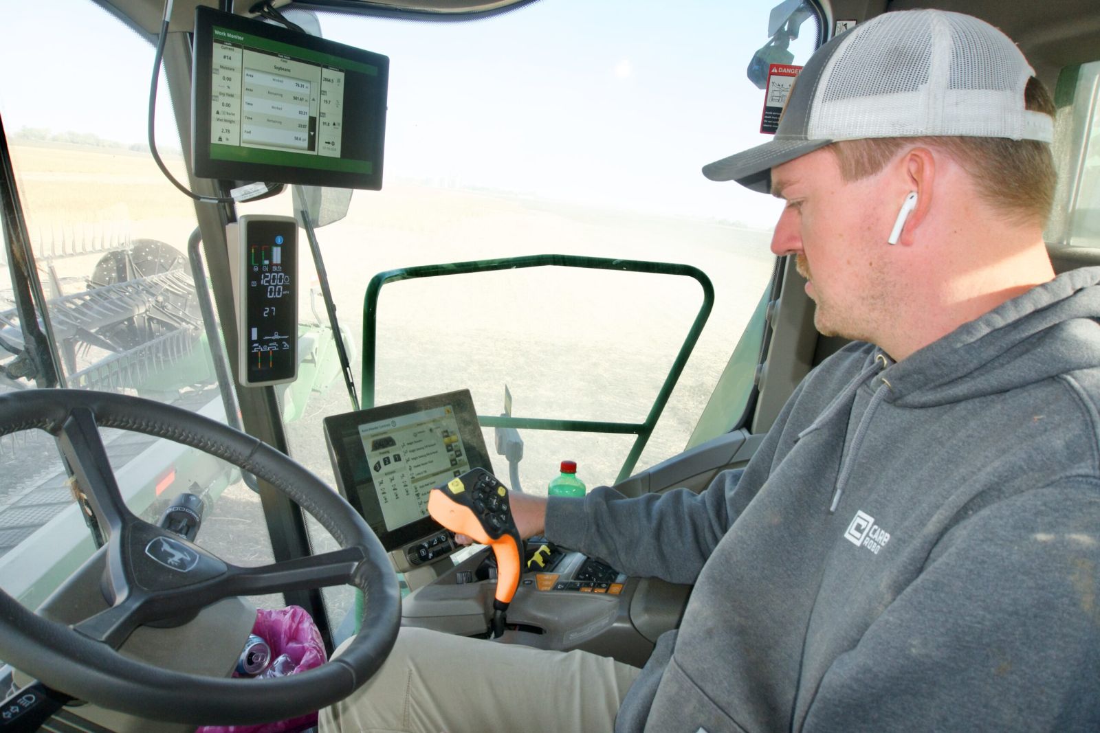 Jack Fehr harvesting organic soybeans on Clear Creek Acres.
