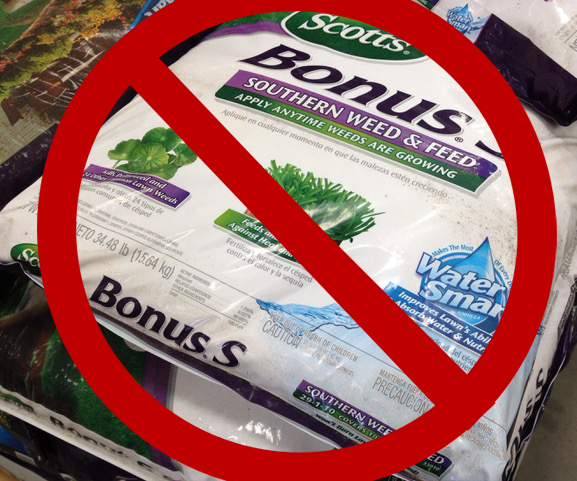 Of the synthetic fertilizers on the market the “weed and feed” variety are the worst. Some contain atrazine, a toxic chemical herbicide that will damage or kill your trees and shrubs. Others contain 2,4-D and other toxic herbicides. Even the chemical boys agree that these products are bad. They have no problem with synthetic fertilizers or herbicides, but they agree that the “weed” and “feed” ingredients aren’t suitable to be applied at the same time. The pre-emergent herbicide needs to be applied about 2 months earlier than the soluble fertilizer. We also agree that atrazine should not be used at all.